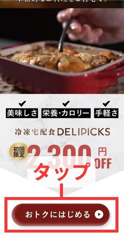 まず「デリピックス公式サイト」にアクセスし、「おトクにはじめる」ボタンをタップします。