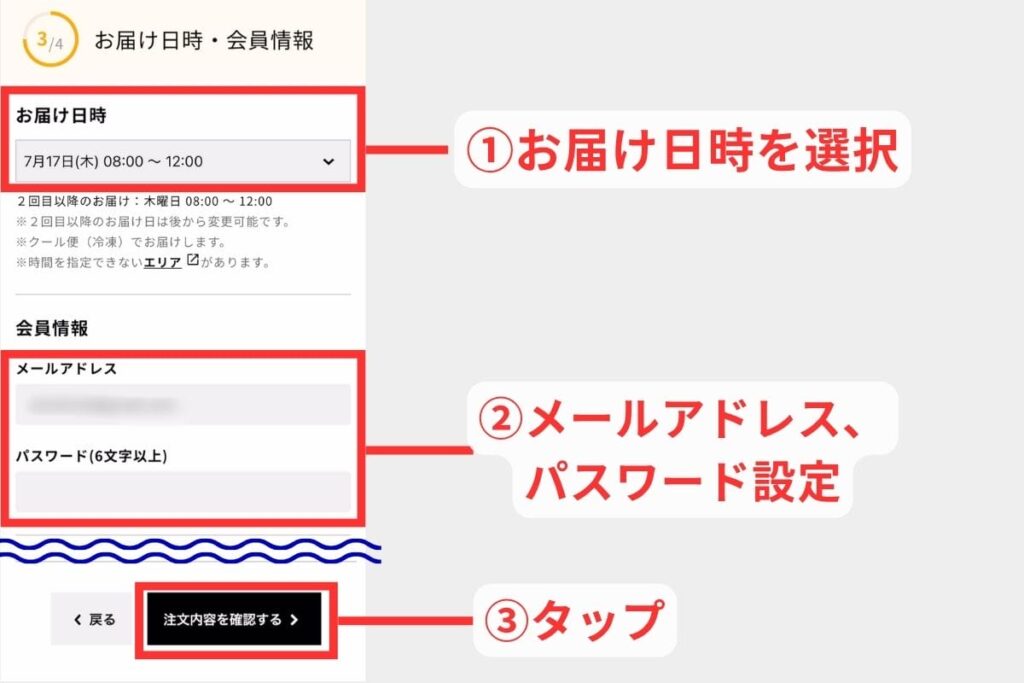 お届け日時・会員情報を入力