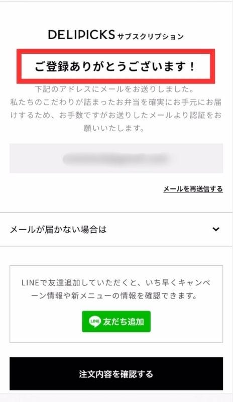 しばらく読み込んだあとに「ご登録ありがとうございます!」の画面が表示されれば注文完了です。