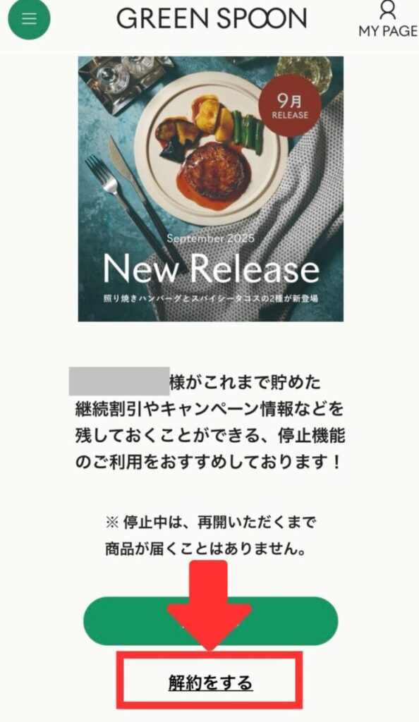 グリーンスプーンのアカウント自体を解約(退会)する方法は、公式HPの解約ページからログイン後、「解約する」をタップすると解約ができます。